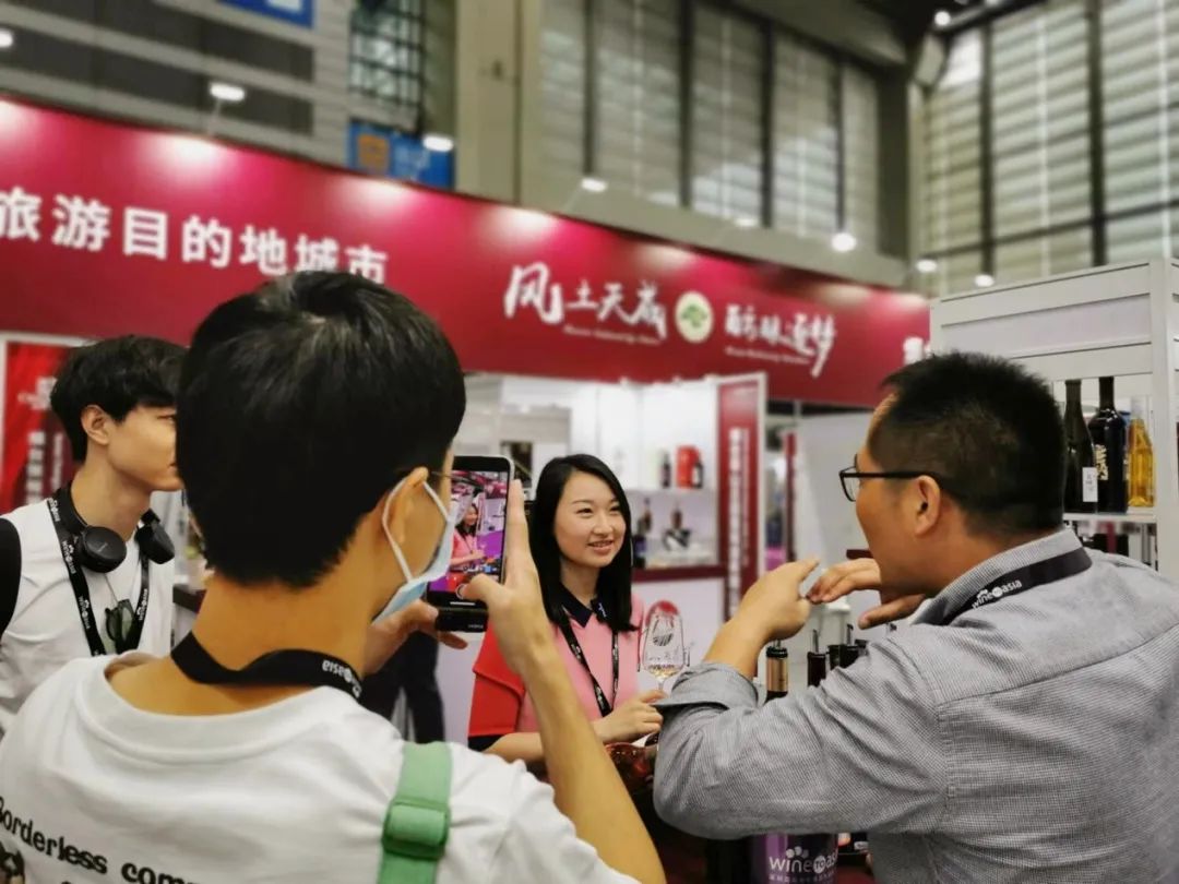九頂莊園展臺前,葡萄酒愛好者們絡(luò)繹不絕,感受來自山東青島的風(fēng)土魅力。