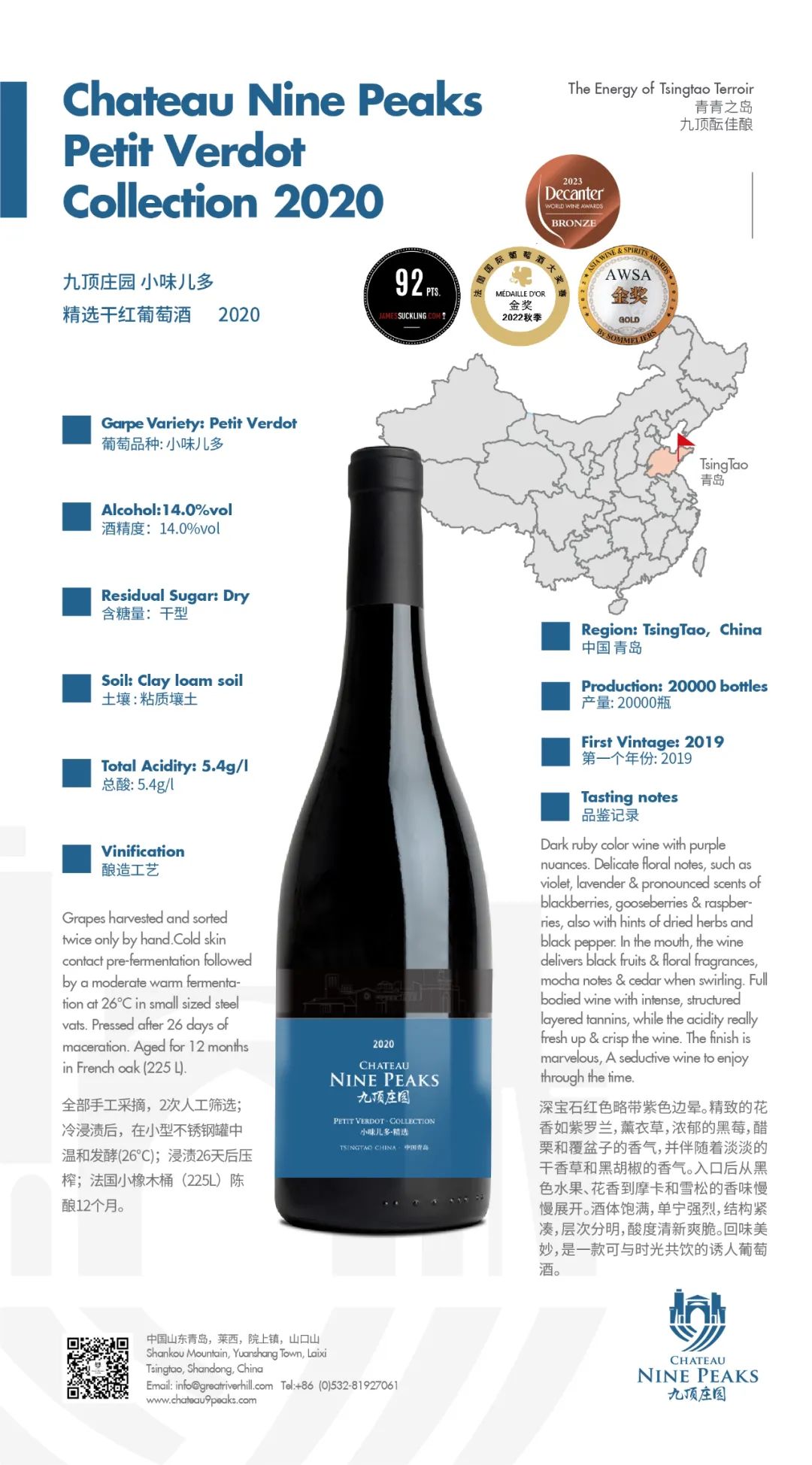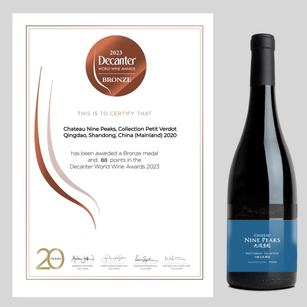 2023年6月9日,世界最大規(guī)模的葡萄酒賽事—Decanter世界葡萄酒大賽(DWWA)2023年的評(píng)審結(jié)果正式公布,九頂莊園3款單一園葡萄酒獲得了3個(gè)銅獎(jiǎng)的好成績(jī)。