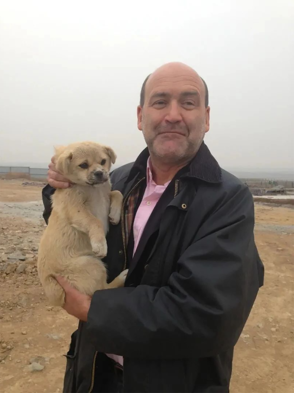 創(chuàng)始人卡爾博士和工地上的小狗合影