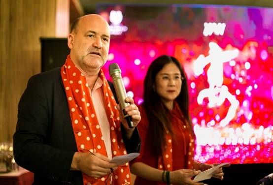 宴會(huì)開(kāi)始,九頂莊園莊主卡爾及薛梅女士,對(duì)到場(chǎng)的朋友們表示熱烈的歡迎,感謝朋友們蒞臨九頂莊園。