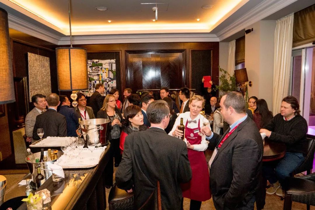 不到六點(diǎn),就已經(jīng)有客人陸續(xù)到場,田啟儒副總領(lǐng)事到達(dá)后,與晚宴的酒莊代表親切交談,不斷詢問中國葡萄酒行業(yè)現(xiàn)狀以及各酒莊的情形。Peter Kupfer教授可以說一口流利的中文,更是對(duì)中國葡萄酒興趣盎然,他也向中國酒莊代表介紹了他即將付梓的新書《中國葡萄酒歷史》。更有幾位慕名而來的國際記者,在反復(fù)確認(rèn)沒有席位時(shí),抓緊機(jī)會(huì)品鑒了迎賓酒,并與酒莊代表進(jìn)行交流,表示期待有更多機(jī)會(huì)了解中國葡萄酒。
