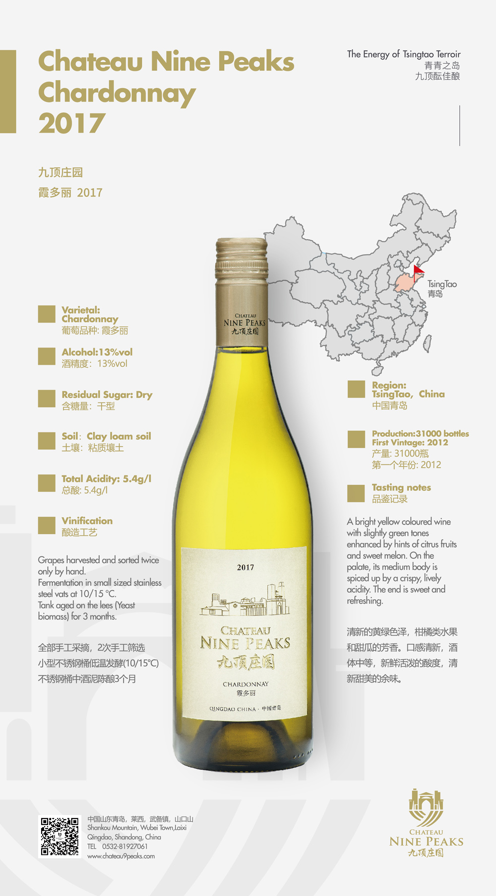 九頂莊園經(jīng)典霞多麗白葡萄酒2017