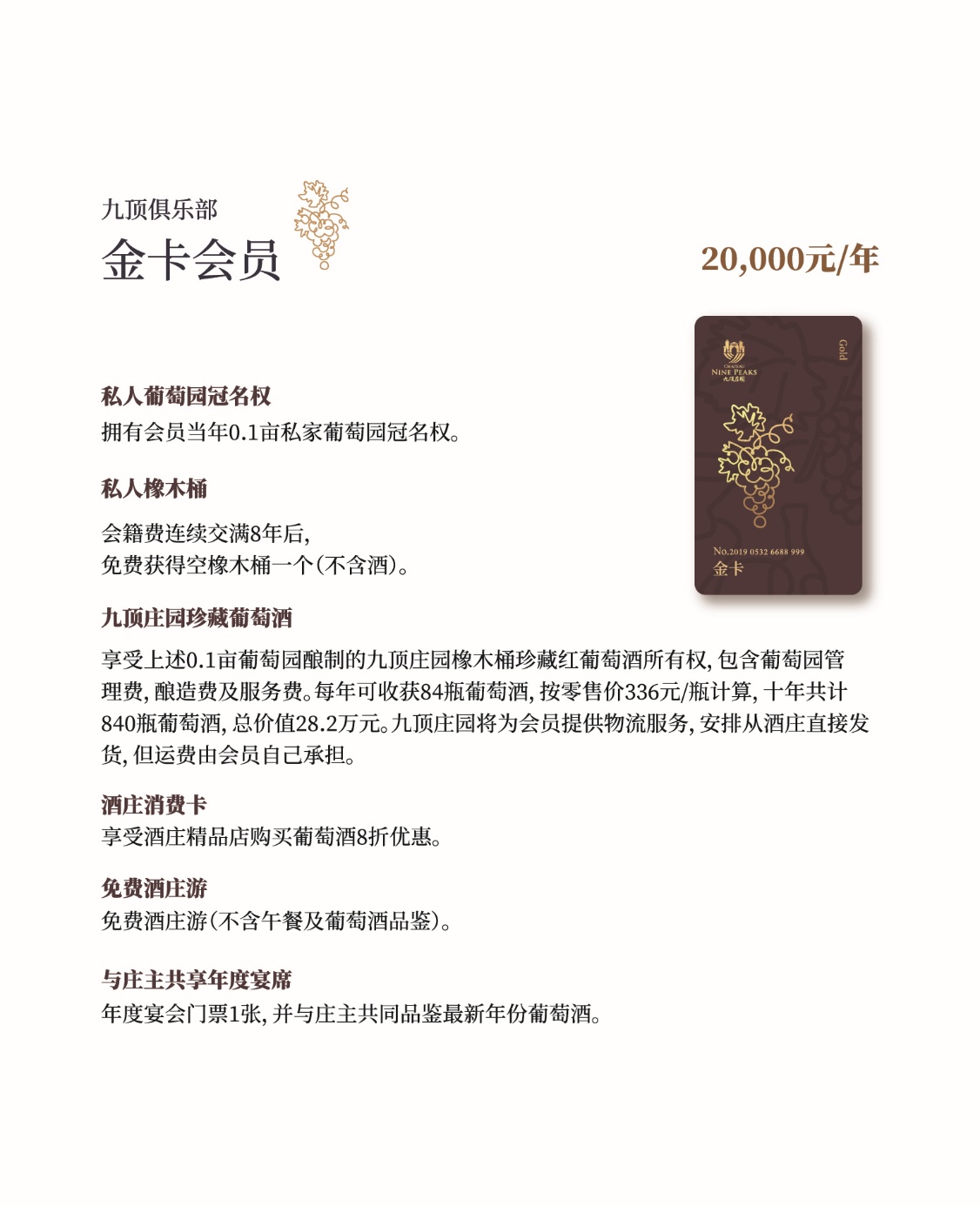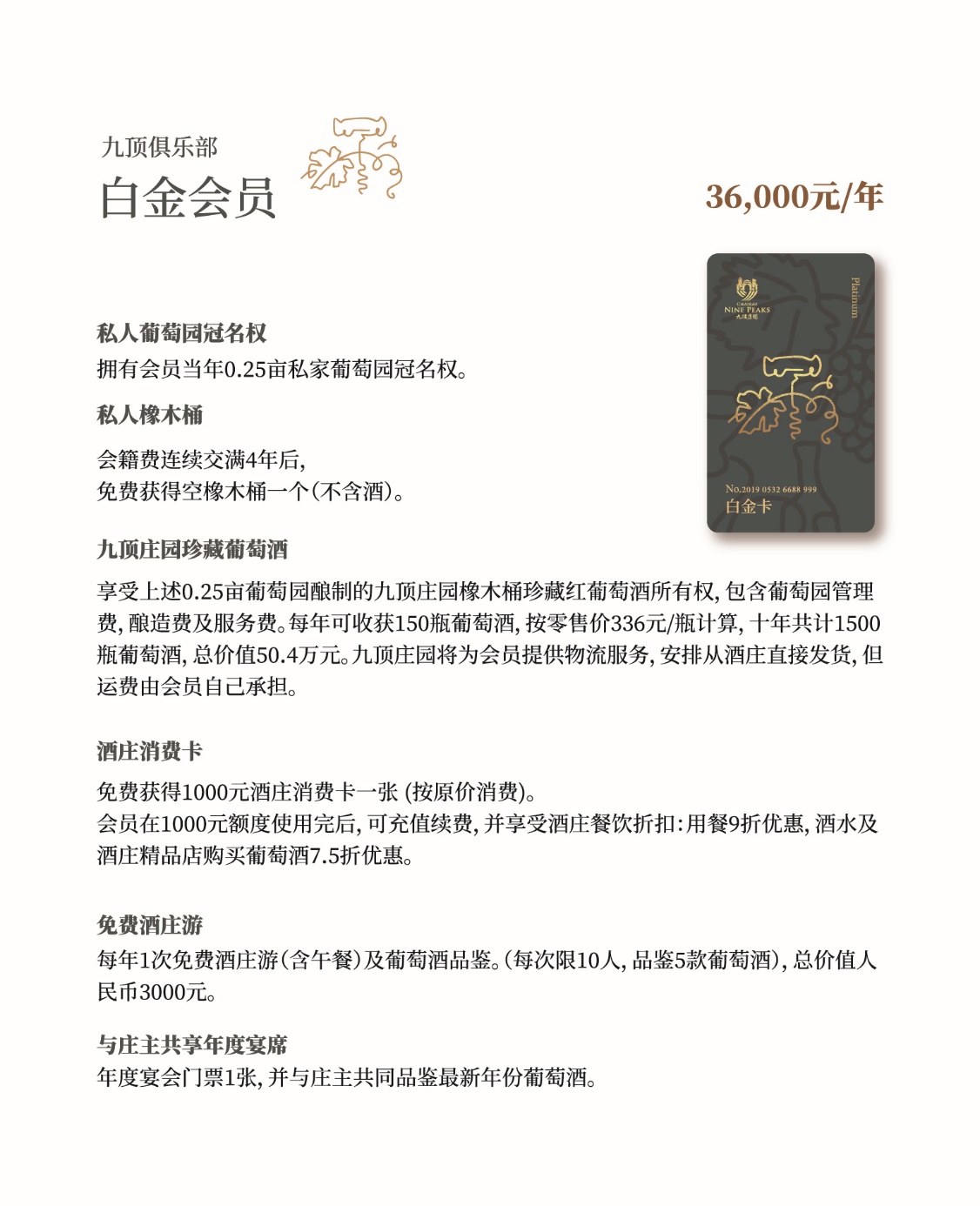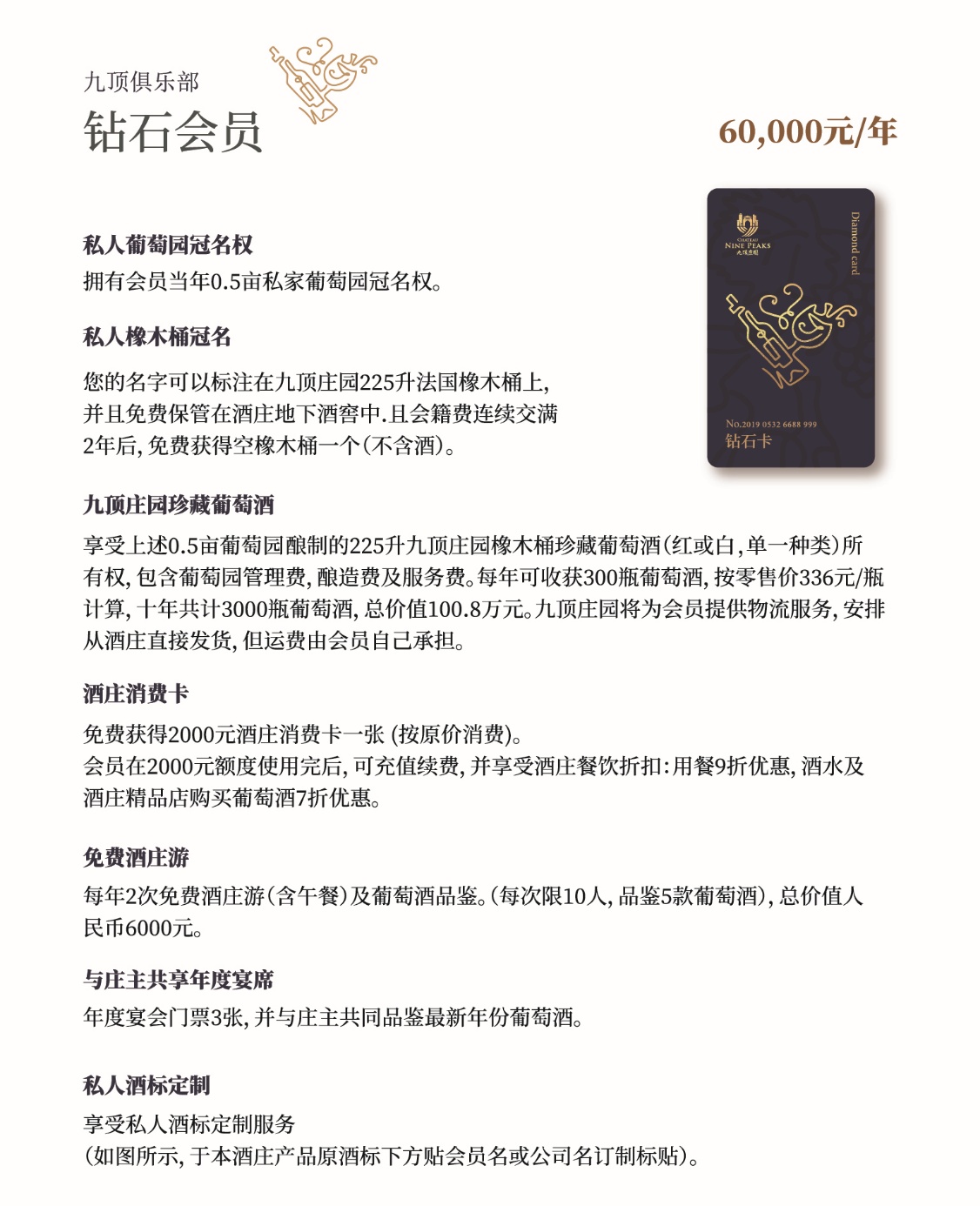 九頂俱樂部是九頂莊園為尊貴的VIP客戶提供專享增值服務的回饋計劃。您將通過選擇服務套餐,獲得相應的鉆石卡,白金卡或金卡會員身份。