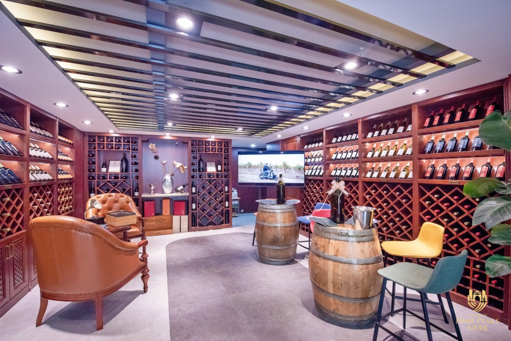 旗艦店的一樓主要是九頂莊園的葡萄酒展示區(qū),匯集了九頂莊園所有品種的葡萄酒。