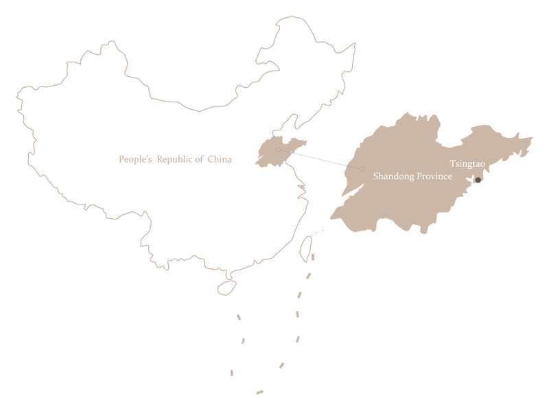 中國山東半島,青島產(chǎn)區(qū), 東經(jīng) 120°17',北緯36°51'。
