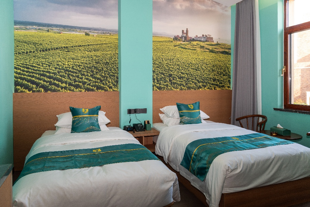 九頂莊園一共有 6 間標(biāo)準(zhǔn)客房,每間設(shè)有 2 張床,分別命名為——赤霞珠、小芒森、阿里伯內(nèi)特、梅洛、小味兒多、西拉——房間面積為 25 平方米,可供 2 人入住。