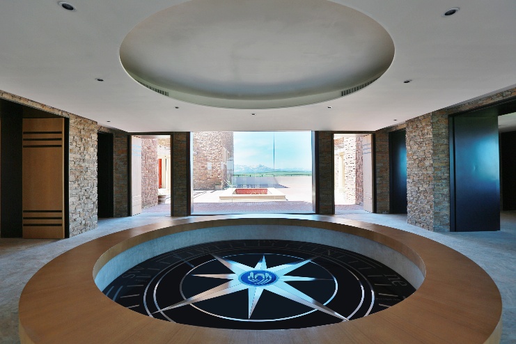 從酒莊極具特色的石拱門進(jìn)入,映入眼簾的是有著無窮精致的接待大廳。大廳中央的大理石盤上標(biāo)識著世界上著名葡萄酒產(chǎn)區(qū)的方位及名字。大廳的一側(cè)為葡萄酒精品店,陳列著九頂莊園的產(chǎn)品其姐妹酒莊出產(chǎn)的獲獎酒品。除此以外,客人還可以在這里為自己或親朋好友買到酒莊紀(jì)念品,見證一次獨特的酒莊之旅。